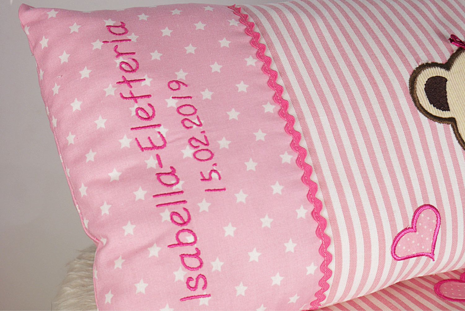 Published 20. März 2019 at 1500 × 1003 in Babydecke Namenskissen Baer Rosa Maedchen 5.